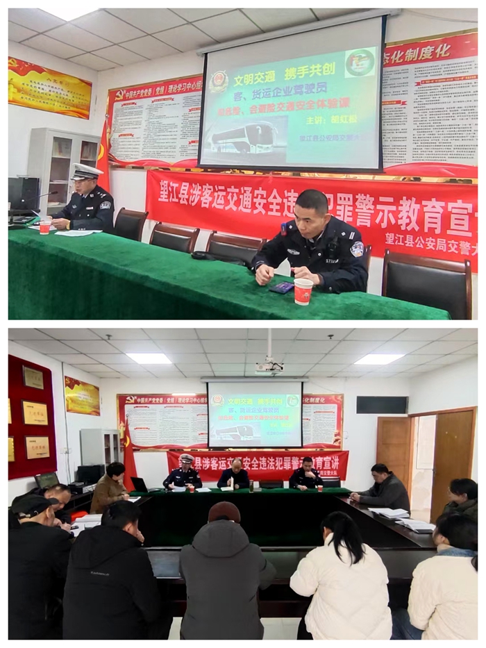 為深入貫徹落實道路交通安全專項整治行動部署要求,切實強化客運企業(yè)源頭安全管理,3月13日上午,望江縣交警宣教部門聯(lián)合望江客運分公司開展涉客運交通安全違法犯罪警示教育宣講活動,分公司安全管理人員積極參與。