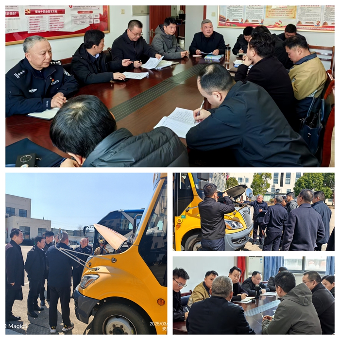 為深刻汲取淮南“2·27”校車(chē)事故慘痛教訓(xùn),消除安全隱患,2025年3月17日上午,安慶市校車(chē)聯(lián)席會(huì)議安全檢查組一行四人到童安校車(chē)服務(wù)分公司開(kāi)展督導(dǎo)檢查,桐城市教育局局長(zhǎng)疏波、桐城市教育局黨委委員吳瀾、桐城市交警大隊(duì)副大隊(duì)長(zhǎng)汪夕亮,桐城市道路運(yùn)輸管理中心副主任汪郁陪同檢查。