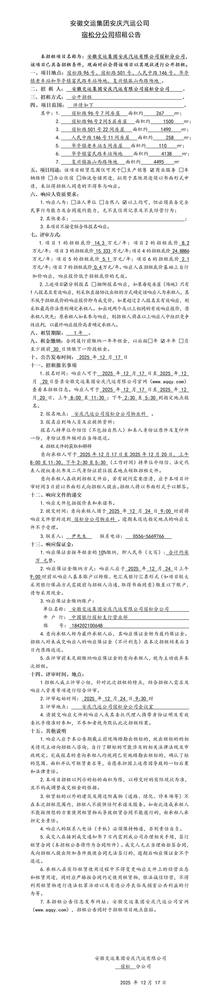 宿松分公司房屋(場(chǎng)地)招租公告