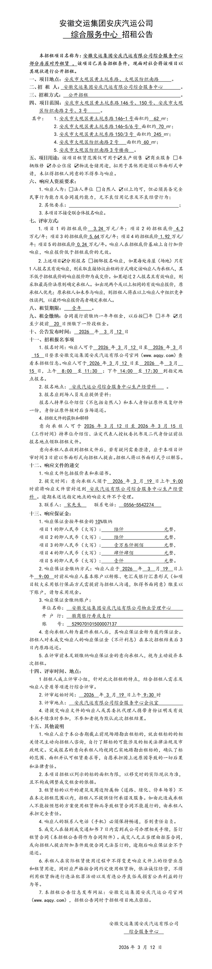 綜合服務(wù)中心部分房屋對(duì)外租賃公告