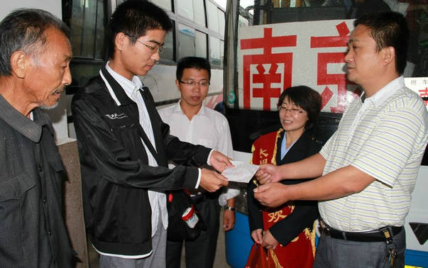 太湖分公司領(lǐng)導(dǎo)得知姐弟倆的情況后,隨即與考生所在鄉(xiāng)村取得聯(lián)系。決定從公司緊張的辦公經(jīng)費(fèi)中解決姐弟倆大學(xué)期間的路費(fèi)。9月10日是弟弟陳先義報(bào)道的日子,太湖分公司領(lǐng)導(dǎo)曹全龍同志代表太湖分公司全體汽運(yùn)人親手將兩張?zhí)聊暇┑能嚻彼偷疥愊攘x同學(xué)手中,并鼓勵(lì)他們樹立信心,正確面對(duì)暫時(shí)的困難,好好學(xué)習(xí),以過硬的本領(lǐng)回報(bào)社會(huì)。受助大學(xué)生陳先義對(duì)太湖分公司的無償援助表達(dá)了感激之情。