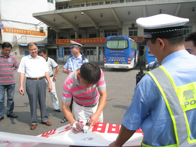 9月4日,市客運分公司與交警支隊二大隊在安慶汽車站停車場內開展“文明交通我承諾,文明交通我參與”駕駛員簽名活動。活動首先由交警支隊二大隊二中隊楊指導員宣傳5種易發(fā)生道路交通事故的不良及違法駕駛行為,楊指要求駕駛員駕駛車輛做到:不超員、不超速、不疲勞駕駛、不酒后駕駛、不無證駕駛,做文明禮讓安全行車的文明駕駛員;隨后進行了駕駛員簽名,市客運分公司110名未當班的駕駛員參加了本次簽名活動。