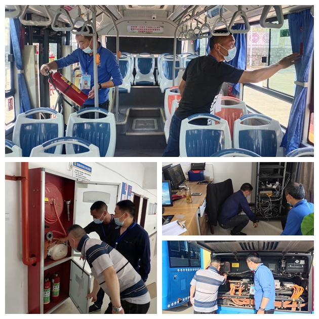 檢查組實(shí)地對(duì)辦公區(qū)域的電路設(shè)施、消防設(shè)施進(jìn)行了查看,重點(diǎn)檢查了停保場(chǎng)的滅火器、消防池,車間的電路設(shè)施以及充電樁、配電房等,確保消防設(shè)施安全有效,充電樁、配電房能正常工作。隨后檢查組對(duì)運(yùn)營車輛的滅火器、安全錘、三角木、緊急逃生出口等進(jìn)行了認(rèn)真排查。