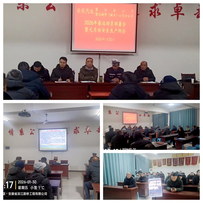 為保障春運期間道路運輸安全,1月30日晚,望江城市(城鄉(xiāng))公交分公司召開2026年春運動員部署會暨元月份安全生產(chǎn)例會。望江縣道路運輸管理服務中心、縣交警大隊蒞臨指導會議?紤]到鄉(xiāng)鎮(zhèn)駐點駕駛員的實際,會議創(chuàng)新采用微信視頻群聊方式,確保了全司60余名駕駛人、安全員等“面對面”參會,實現(xiàn)培訓全面覆蓋。